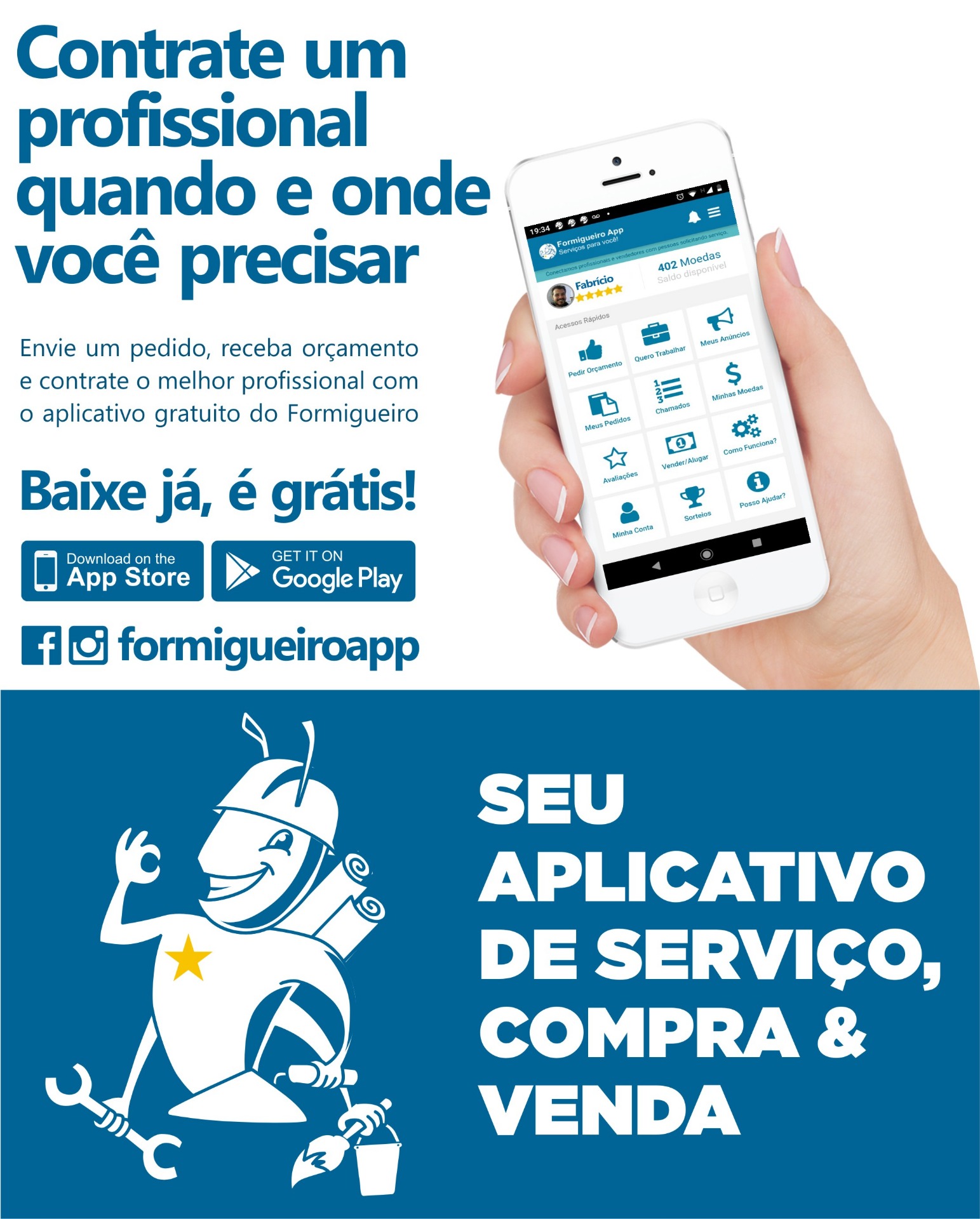 Precisando de um Profissional? Milhares de profissionais cadastrados e avaliados por clientes, permitindo você negociar diretamente sem custo. É fácil. É grátis. Baixe nosso aplicativo.